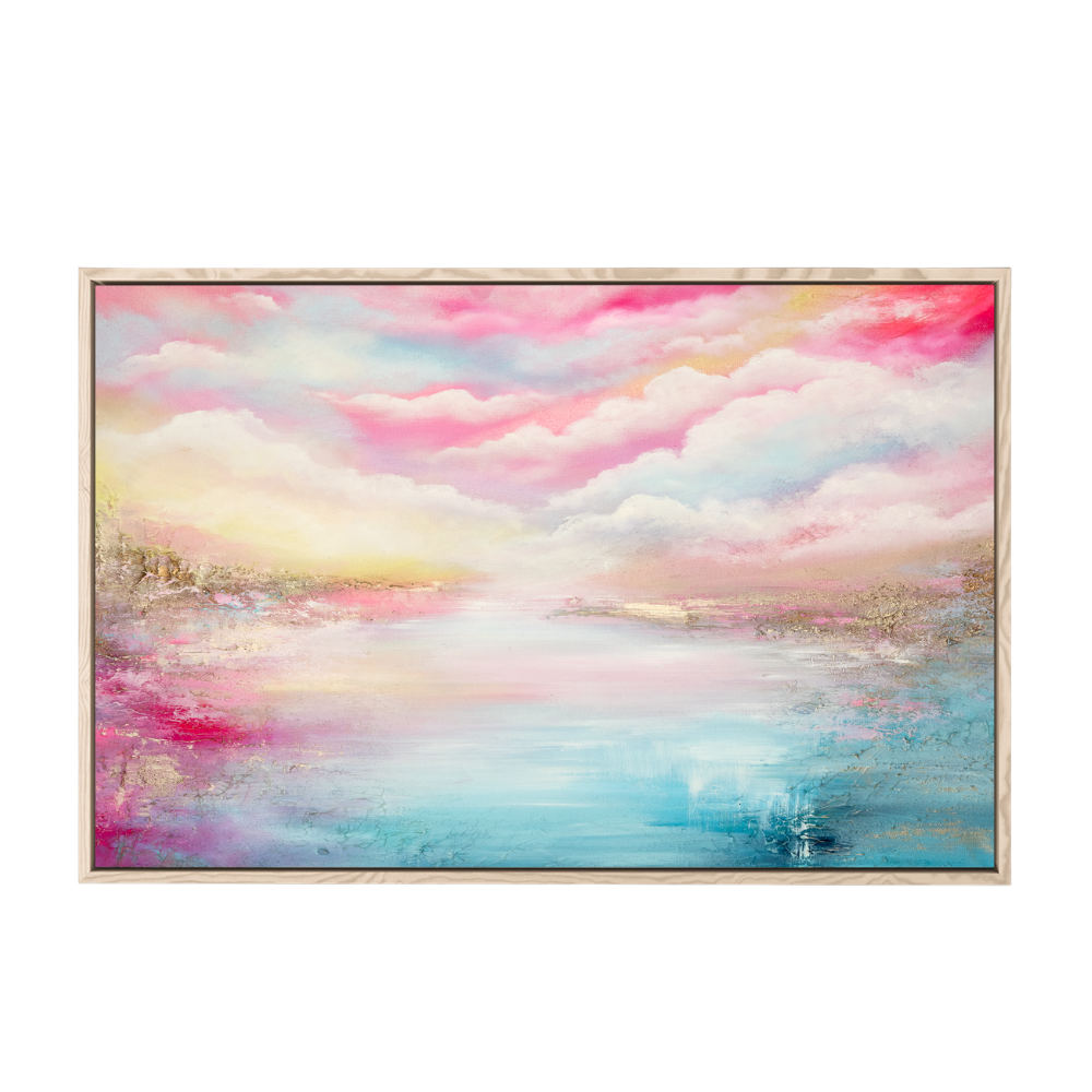 Every canvas is hand stretched over a deep heavy duty wooden frame made from sustainably sourced knotless solid wood in Europe. You can choose from three elegant floater frame finishes: oak, white or black. Each is designed to create a soft shadow around the artwork for a modern gallery quality presentation that suits a range of interior styles.